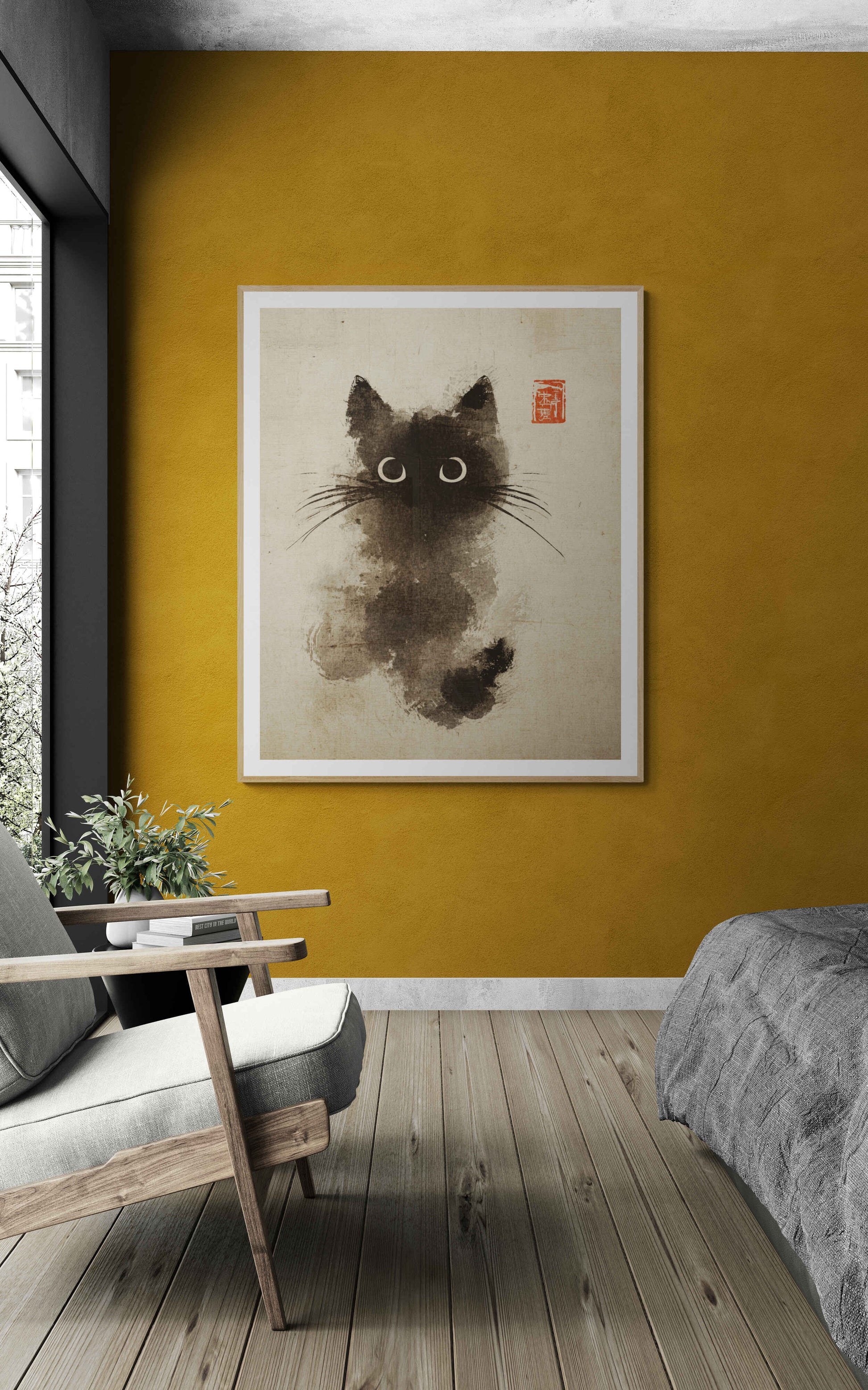 Symbolizing curiosity, intuition, and quiet companionship, this artwork brings a soft, contemplative energy to any space. Ideal for bedrooms, reading nooks, creative studios, or serene living areas, it pairs beautifully with other animal works from the collection.